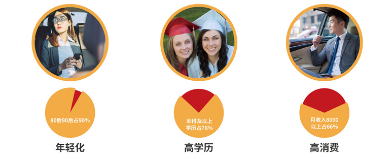 網約車的受眾人群呈現年輕化/高收入/高學歷的特點,與70%以上廣告主的目標客戶群體高度吻合,屬于金字塔尖的消費人群。