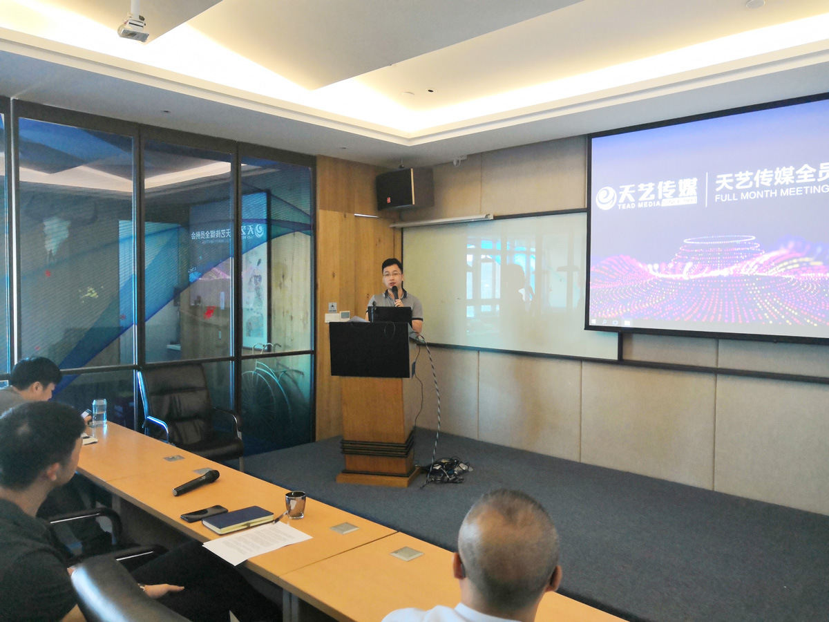 林一城總經(jīng)理在會(huì)議中總結(jié)了在過(guò)去的半年里天藝傳媒所取得的成績(jī),肯定了公司所有員工的辛勤努力與付出,并感恩為天藝傳媒這半年來(lái)每一步的發(fā)展默默奉獻(xiàn)的每一位同仁。