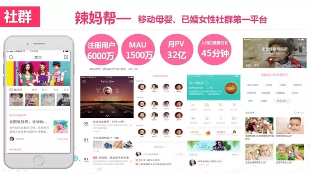 辣媽幫創(chuàng)立于2012年5月,僅用了4年時(shí)間,便擁有了6000萬(wàn)的用戶(hù)。辣媽幫致力于打造全新母嬰生態(tài)鏈,旗下四大應(yīng)用“孕期伴侶-辣媽幫-荷花親子-辣媽商城”涵蓋了女性“育兒-生活-情感-消費(fèi)”四大領(lǐng)域。