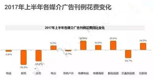 戶外媒體與“場景”和“場所”的連接成為決定其價值的重要因素。根據(jù)CTR媒介智訊《2017年上半年各媒介廣告刊例花費變化》顯示,影院視頻、電梯海報、電梯電視成為了三種增長最快的媒介形態(tài),而報紙、雜志和交通類視頻則是三種降幅最大的媒介形態(tài)。